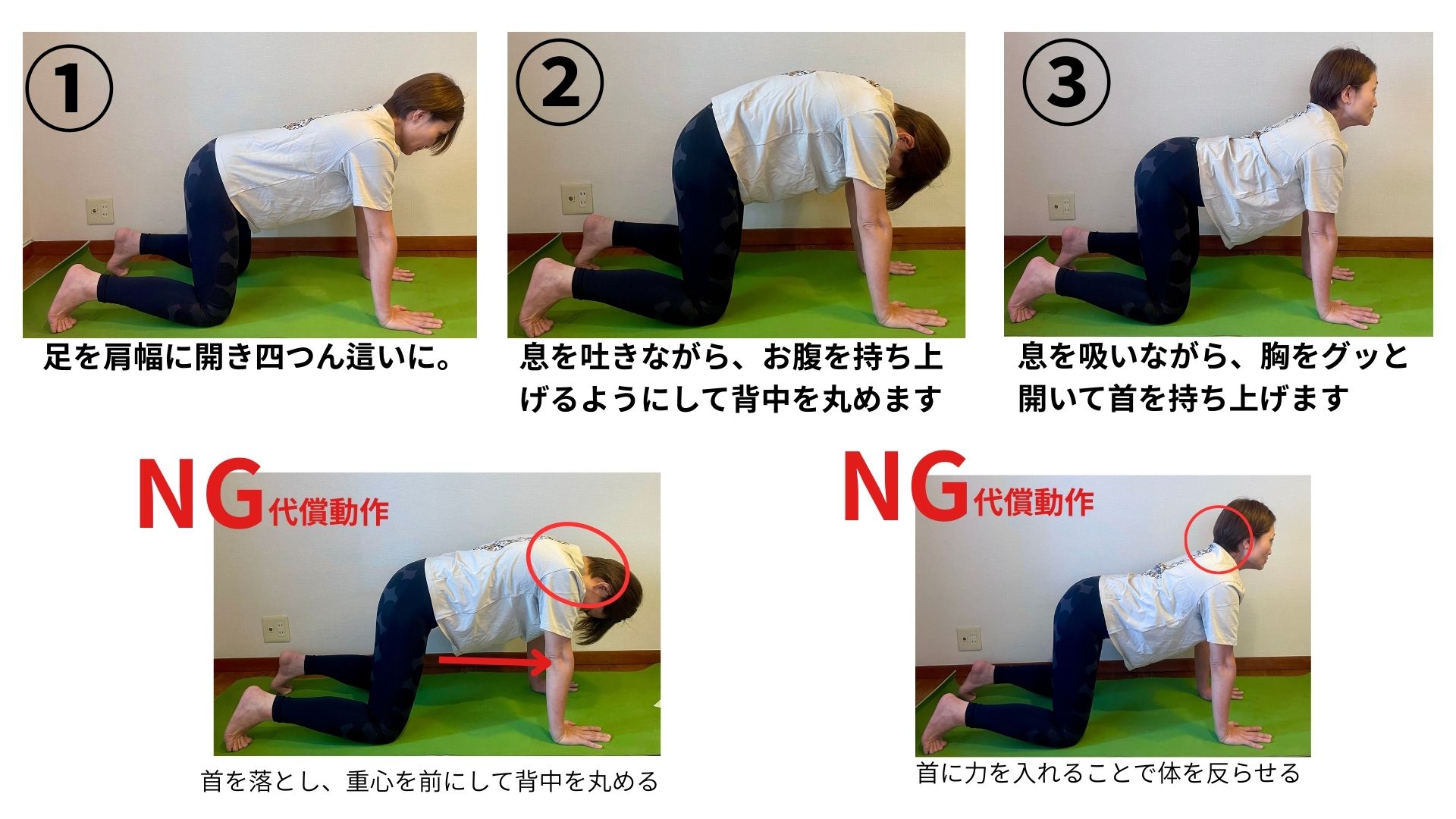 四つ這いでの骨盤コントロール練習が地味ですが確実に効きます。